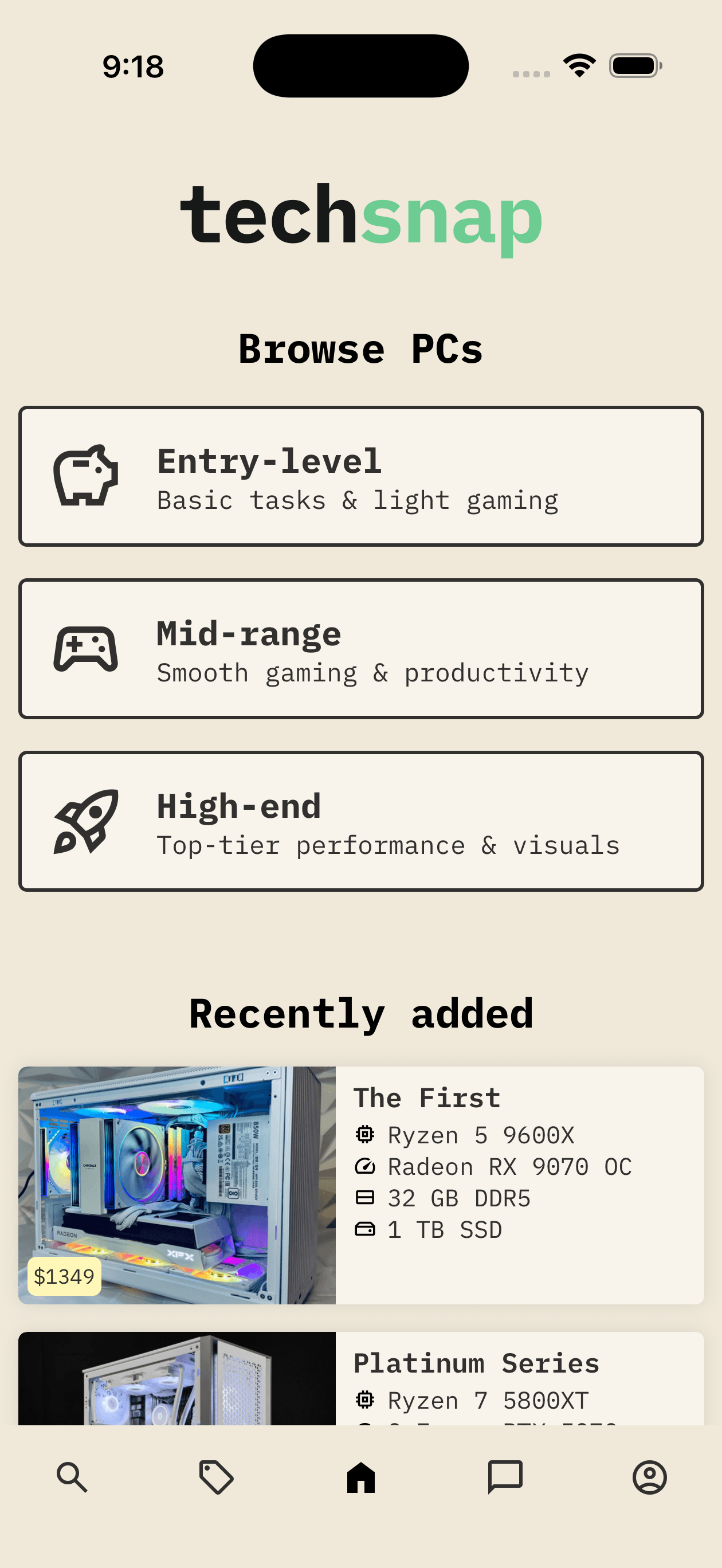 Techsnap connects PC enthusiasts with expert builders, creating a seamless marketplace where dream builds become reality.